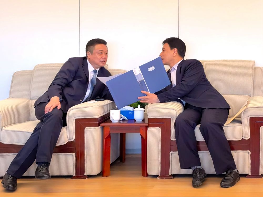 余院长与深圳能源总裁李英峰、总经济师徐同彪 在贵宾室交流近期工作