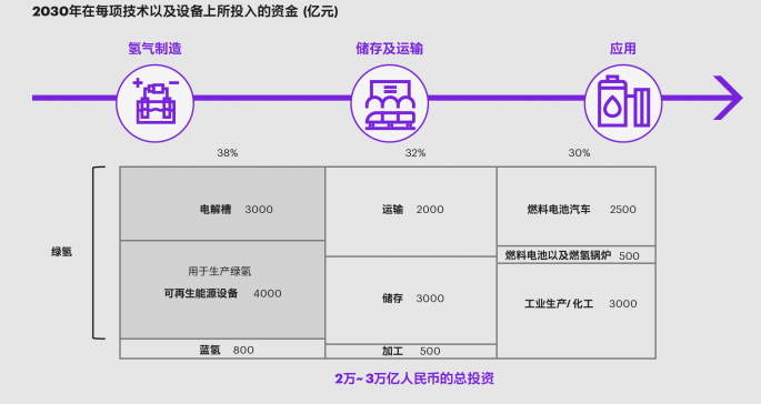 白皮书在分析时强调:中国氢气成本在氢气售价中的占比达70%。目前,电解水的制氢成本约为 3-5 元 /Nm³,仍显著高于化石燃料制氢和工业副产氢。在理想情况下,科尔尼预测,碱式和PEM 的成本都将在2035 年左右低于灰氢,届时碱式和PEM将在各自适用的领域和场景实现大规模的绿氢生产。在电解槽成本与可再生能源电价下降的共同助推下,电解水制氢成本有望在2035年左右实现与灰氢平价。在氢能基础设施建设方面,白皮书预计,在国家及地方政策的强力推动下,中国加氢站数量有望在2050年突破万座,加氢站累计投资额逾600亿元,实现约16%的年复合增长率。截至2021年底,中国累计建成超过190座加氢站,在营加氢站超过157座,超过日本,位居世界首位。但是,对于氢能产业的发展来说,这些加氢站的数量还是较少。这主要是因为,比起充电桩低廉的成本,加氢站则是动辄过千万元的巨大投入,这也是氢能源汽车乃至氢能产业发展受到制约的一个重要原因。不过,2021年随着示范城市政策的落地,国内加氢站建设将提速,到2030年预计建成数量将超过1000座。尽管如此,白皮书指出:中国氢能产业某些核心材料严重依赖于进口。例如,固定氧化物与阴离子交换膜有很大的发展潜力,但是技术不够成熟,只有少数公司和设备制造商参与其中。核心材料缺失制约着中国氢燃料电池行业的发展。白皮书认为,绿氢的生产、储存以及供给,和燃料电池是未来十年的发展重点。针对氢能政策补贴方面,白皮书认为中国对于氢能补贴的范围有些狭窄,基本集中在氢燃料电池领域,需要对氢能产业相关企业有补贴、优惠电价、税收优惠等政策。需求侧的政策目前主要集中在储氢和氢能汽车领域,没有实际的指标。