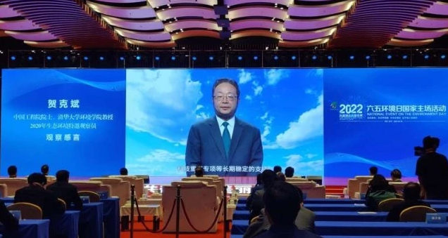 6月5日,中国工程院院士、清华大学环境学院教授贺克斌在六五环境日国家主场活动发表观察感言。中青报·中青网记者 张艺/摄
