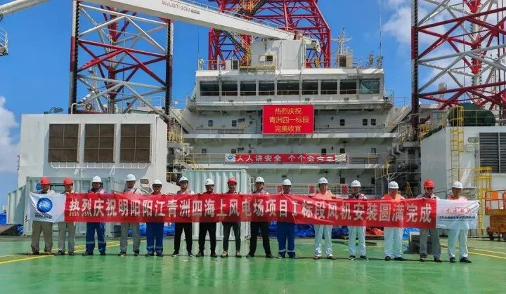 继阳江青洲一、二海上风电场项目顺利收官之后,10月3日,由江苏龙源振华海洋工程有限公司负责承接的又一项目——明阳青洲四海上风电场项目圆满完成。此举标志着国内首个“海上风电+海洋牧场+海水制氢”融合项目的关键节点取得重大胜利。