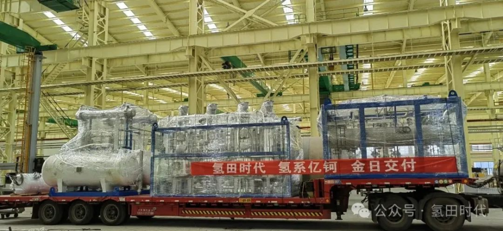 5月27日,氢田时代1000标方水电解制氢系统产品从库布其起运,正式交付客户亿钶公司。