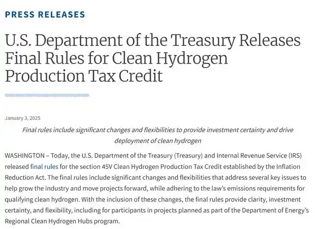 另一个潜在的不确定性在于特朗普即将上台,新一届国会有可能试图废除这项政策。但从现实的角度来看,氢能源政策通常能获得美国两党议员的一致支持,同时石油和能源巨头也都在这个领域有所布局。若特朗普想要修订有关税收抵免的政策,整个流程也可能要持续数年。