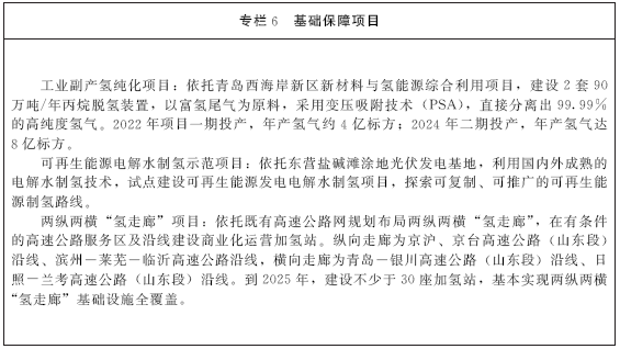 《规划》同时还发布了山东省“十四五”期间氢能产业重大示范试点项目名单(第一批)。