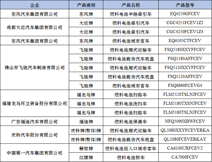 公示的燃料电池车共包括10款物流运输车,3款客车,3款环卫车,以及一款乘用车。对比此前批次,燃料电池中重卡的占比有所提升。
