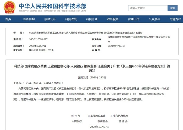 方案明确,长三角G60科创走廊包括G60国家高速公路和沪苏湖、商合杭高速铁路沿线的上海市松江区,江苏省苏州市,浙江省杭州市、湖州市、嘉兴市、金华市,安徽省合肥市、芜湖市、宣城市9个市(区),总面积7.62万平方公里。