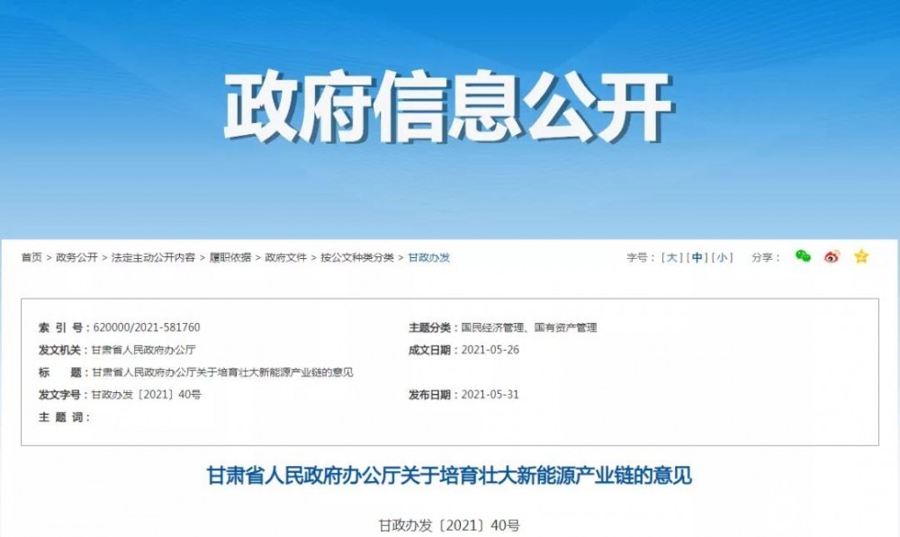 5月31日,甘肃省人民政府办公厅发布了《关于培育壮大新能源产业链的意见》(以下简称《意见》)。