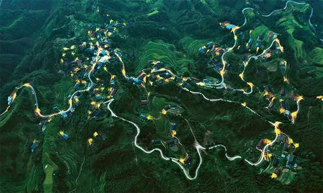 近年来,我国加快推进城乡建设绿色低碳发展,广大农村地区加快生物质能、太阳能等可再生能源在农业生产和农村生活中的应用,推进农村建设和用能低碳转型。在广西大石山区的千山万弄里,一盏盏太阳能路灯不仅在夜间为村民照亮山路,更为村民点亮改变家乡面貌、振兴乡村的希望。图为2021年8月25日,广西融水苗族自治县杆洞乡党鸠村夜景(无人机照片)。 新华社记者 黄孝邦/摄