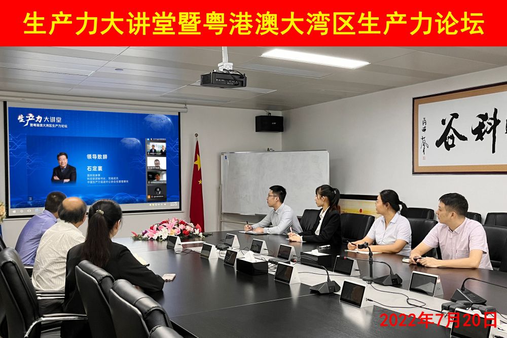 2022年7月20日下午,由中国生产力促进中心协会、香港生产力促进局、澳门生产力暨科技转移中心主办的生产力大讲堂暨粤港澳大湾区生产力论坛线上线下隆重开幕,星空真人集团董事局余主席、星空真人研究院全体积极响应,组织柴秘书、蔺助理等及在星空真人实训干部郴州唐科长、廖科长一同参加论坛学习,就数字化智能制造等认真听取经验交流和知识分享。