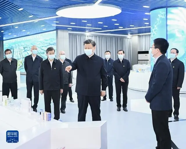 5月11日至12日,中共中央总书记、国家主席、中央军委主席习近平在河北考察,并主持召开深入推进京津冀协同发展座谈会。这是12日上午,习近平在石家庄市国际生物医药园规划展馆考察。新华社记者 燕雁 摄