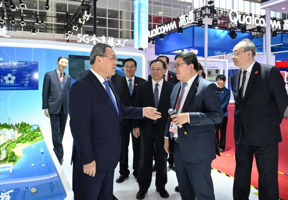 开幕式前,李强到链博会展馆巡馆并与有关企业负责人互动交流。
