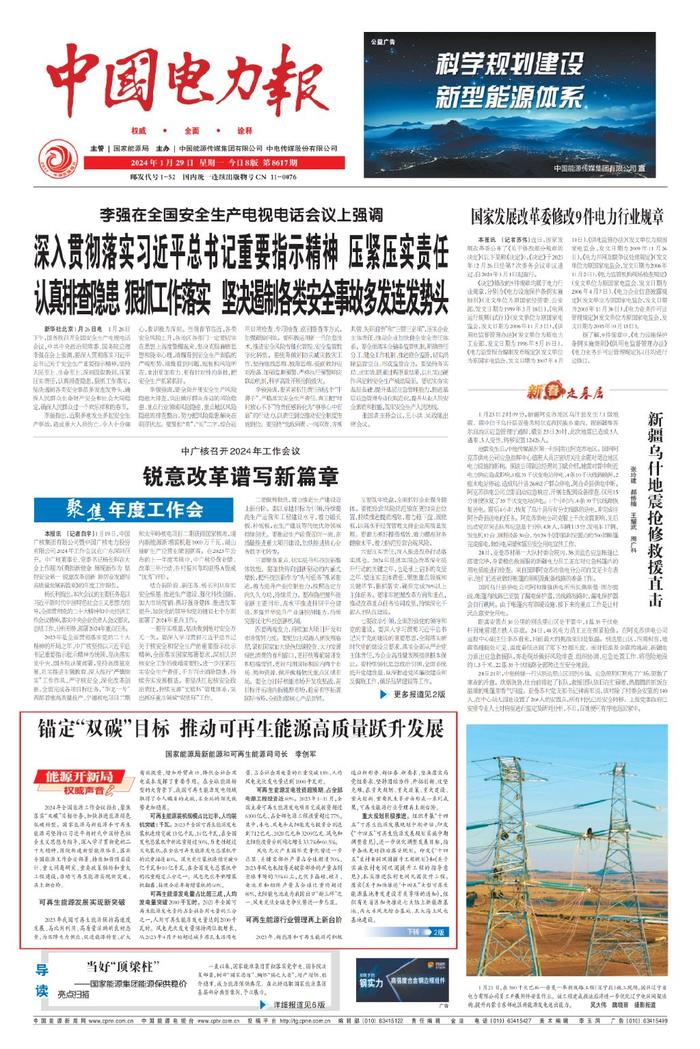 2024年是实现“十四五”规划目标任务的关键一年。随着市场竞争更加充分、技术不断进步,特别是党中央高度重视,新能源和可再生能源将继续保持高速发展态势。新的一年,要按照稳中求进、以进促稳、先立后破的工作总基调,坚持陆海并进、集散并举、多能互补、融合发展,持续推进可再生能源高质量跃升发展。