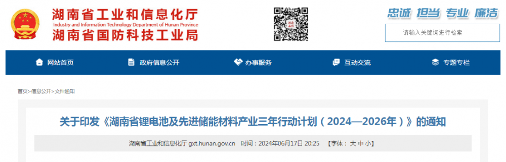 湖南省锂电池及先进储能材料产业三年行动计划(2024—2026年)