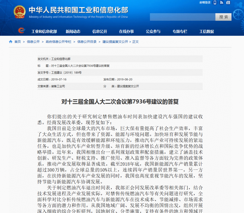 外汇天眼APP讯 :8月20日,工业和信息化部发布了对《关于研究制定禁售燃油车时间表加快建设汽车强国的建议》的答复,表示中国将支持有条件的地方建立燃油汽车禁行区试点,在取得成功的基础上,统筹研究制定燃油汽车退出时间表。