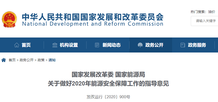 在习近平总书记提出的“四个革命、一个合作”能源安全新战略指引下,我国能源转型发展和产供储销体系建设深入推进,供给体系不断完善,煤电油气供应保障能力稳步提升,安全风险总体可控,能够满足经济社会发展正常需要,并经受住了新冠肺炎疫情等突发情形的冲击和考验。与此同时,保障能源安全稳定供应也面临一些新的挑战。为深入贯彻落实习近平总书记系列重要指示批示精神,紧紧围绕《政府工作报告》决策部署,扎实做好“六稳”工作,落实“六保”任务,推动能源高质量发展,不断提高能源安全保障能力,提出如下意见: