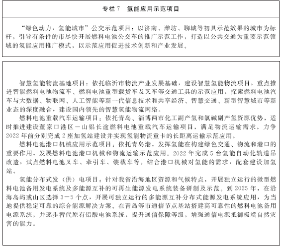 《规划》同时还发布了山东省“十四五”期间氢能产业重大示范试点项目名单(第一批)。