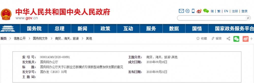 近年来,我国以网络购物、移动支付、线上线下融合等新业态新模式为特征的新型消费迅速发展,特别是今年新冠肺炎疫情发生以来,传统接触式线下消费受到影响,新型消费发挥了重要作用,有效保障了居民日常生活需要,推动了国内消费恢复,促进了经济企稳回升。但也要看到,新型消费领域发展还存在基础设施不足、服务能力偏弱、监管规范滞后等突出短板和问题。在常态化疫情防控条件下,为着力补齐新型消费短板、以新业态新模式为引领加快新型消费发展,经国务院同意,现提出以下意见。