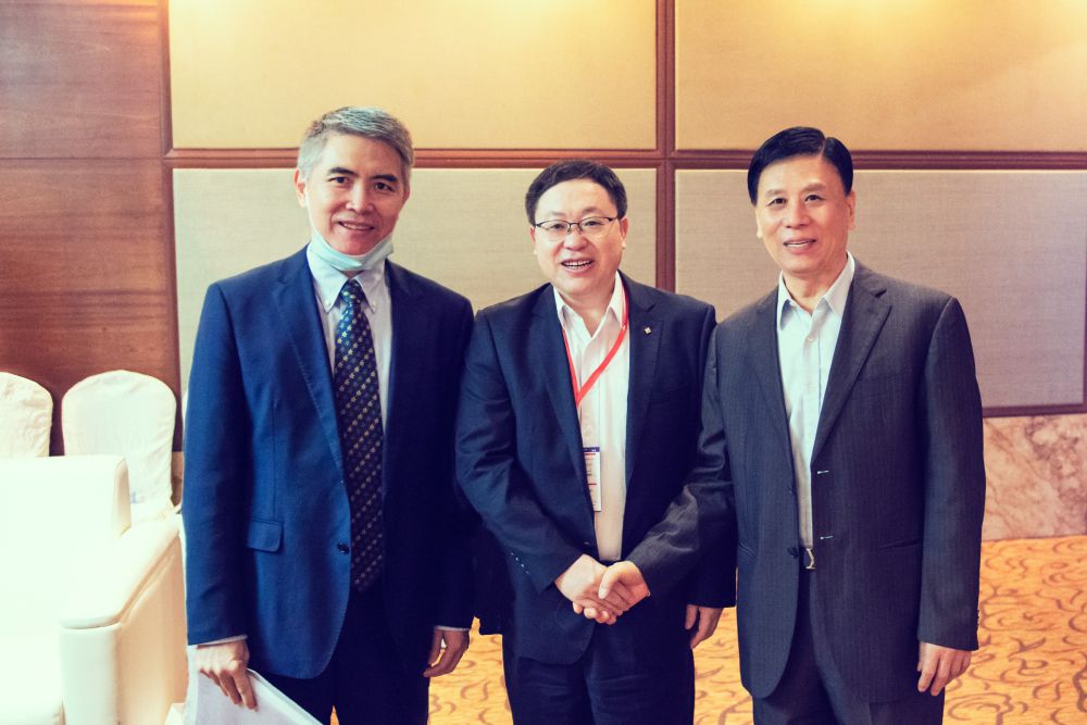 余主席与原工信部部长李毅中、联合国工发组合作中心主任郭力、工业总会会长吴光权合影