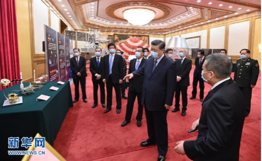 新华社北京2月22日电 中共中央总书记、国家主席、中央军委主席习近平22日上午在北京人民大会堂会见探月工程嫦娥五号任务参研参试人员代表并参观月球样品和探月工程成果展览,充分肯定探月工程特别是嫦娥五号任务取得的成就。他强调,要弘扬探月精神,发挥新型举国体制优势,勇攀科技高峰,服务国家发展大局,一步一个脚印开启星际探测新征程,不断推进中国航天事业创新发展,为人类和平利用太空作出新的更大贡献。